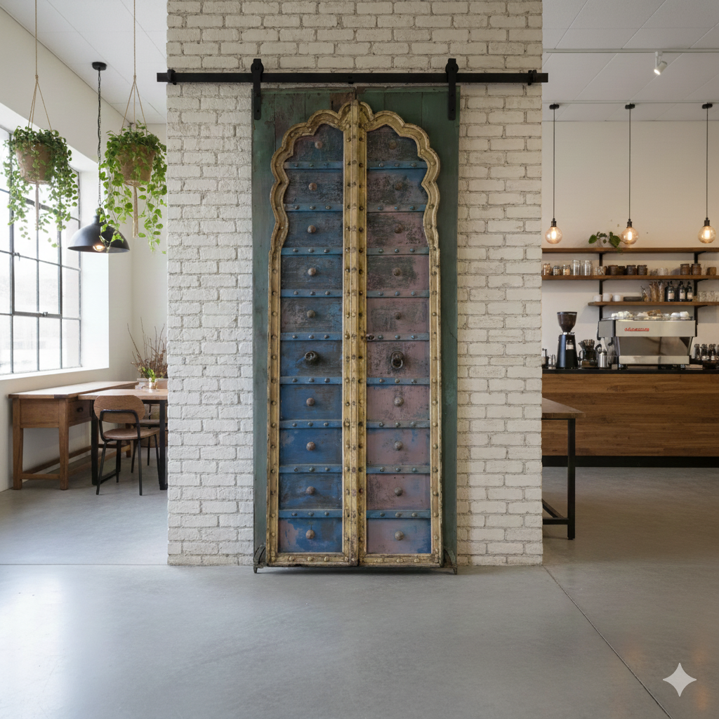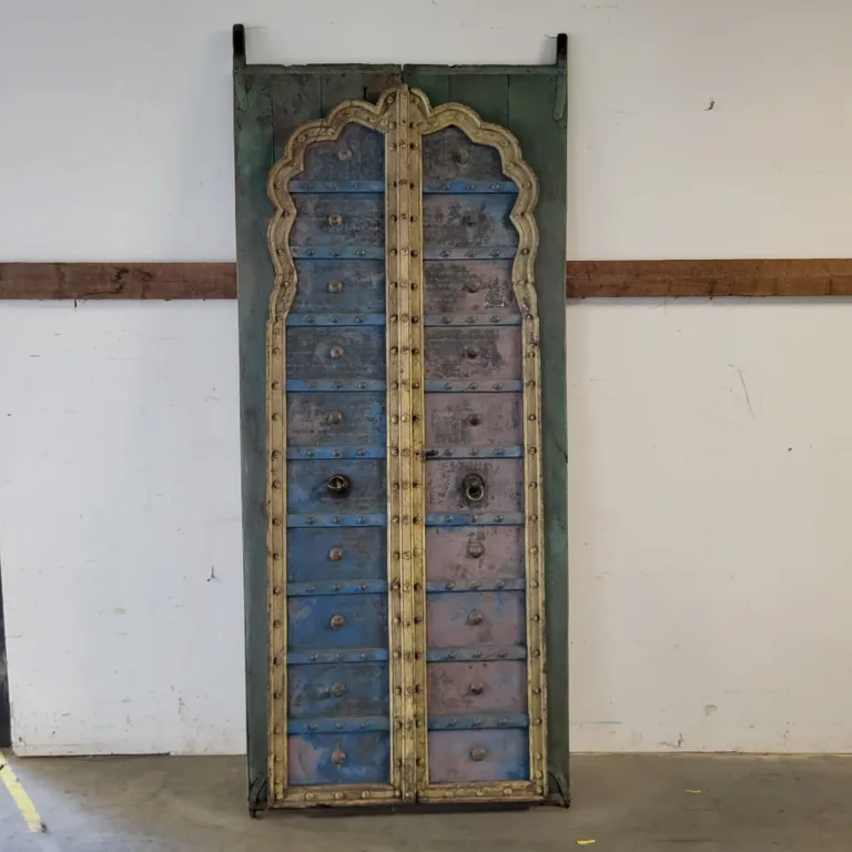 Im Originalzustand stehende Haustür (mit Rahmen) hergestellt aus massiv Teakholz von ca. 1850. Die mit den originalen Beschlägen aus Schmiedeeisen versehene Tür befindet sich in einem guten Zustand und weist nur normale Gebrauchsspuren auf. Maße: Breite 1,28 mHöhe 2,90 m
