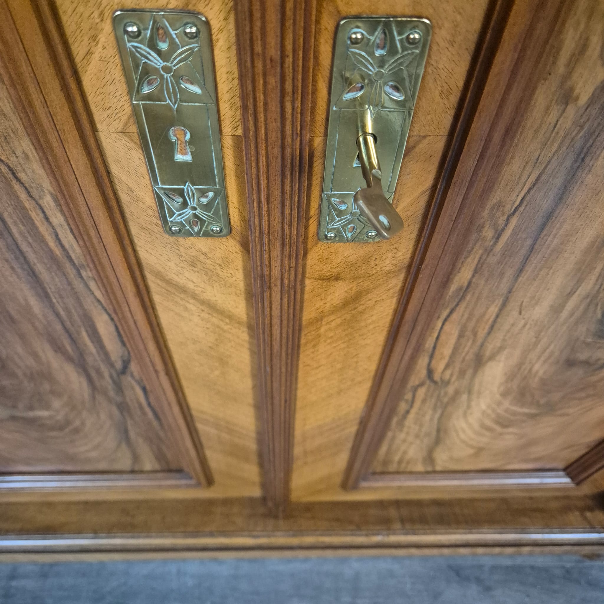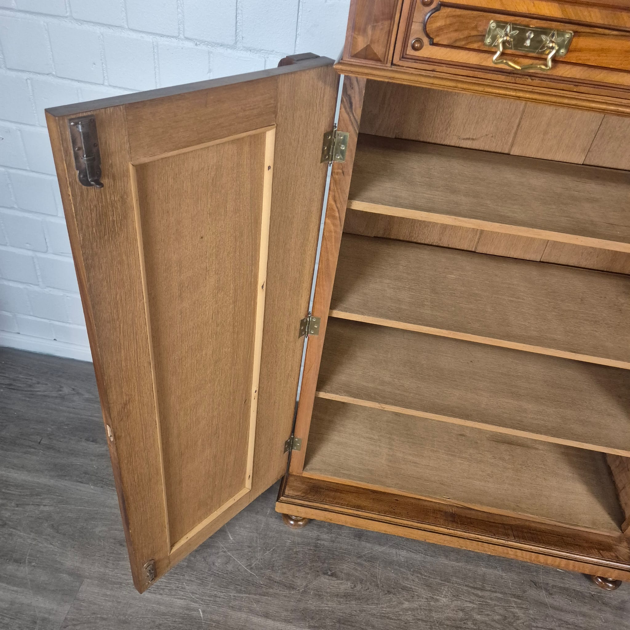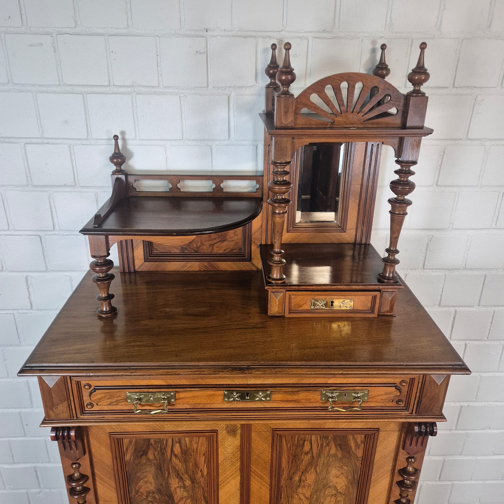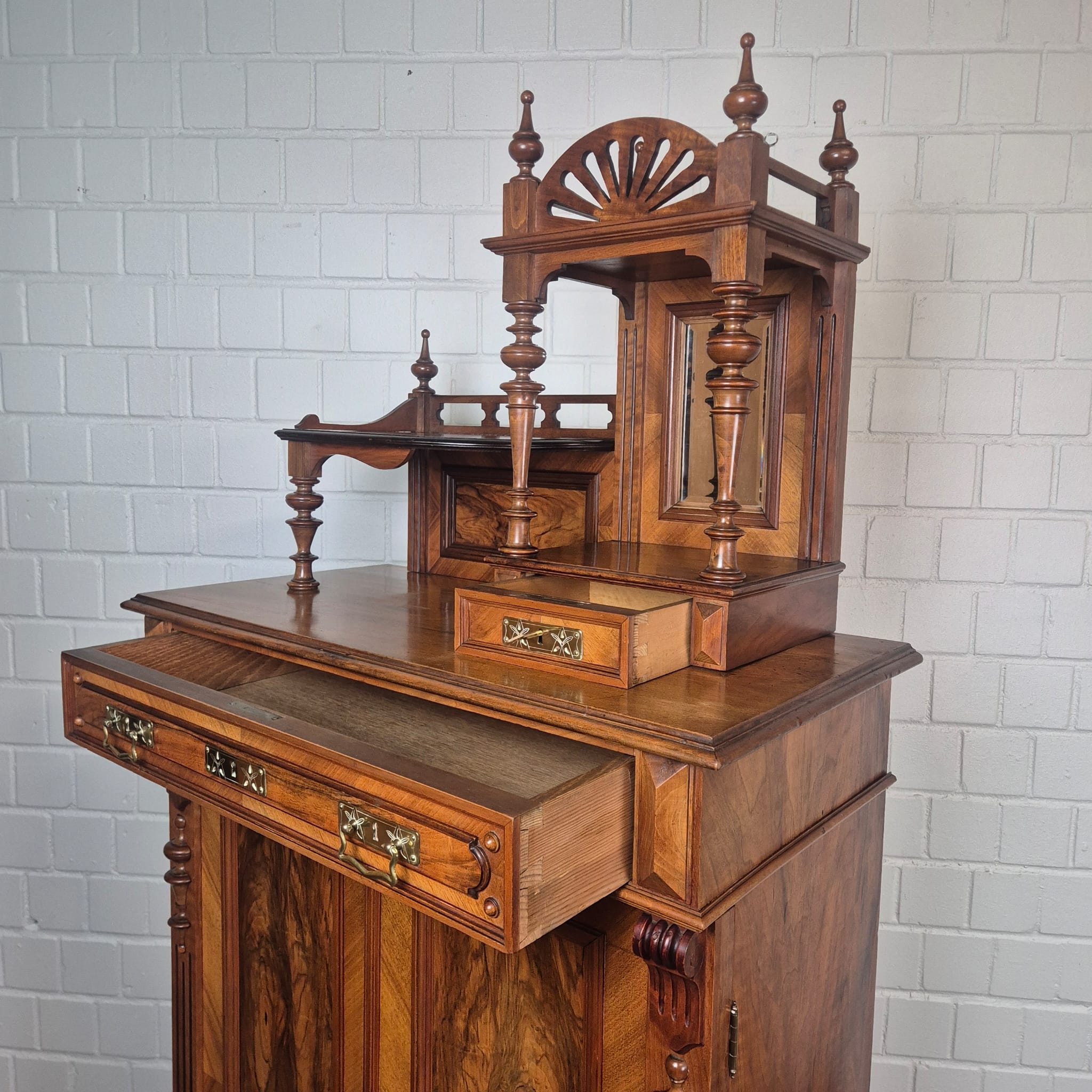 Mobile Vertiko con alzatina in stile Art Nouveau restaurato, impiallacciato in noce e laccato, risalente al 1900 circa. Il mobile è in ottime condizioni e presenta solo minimi segni di usura. Smontabile (2 pezzi).