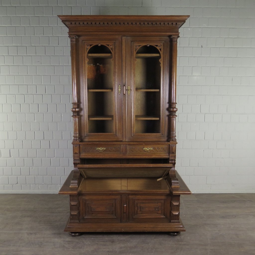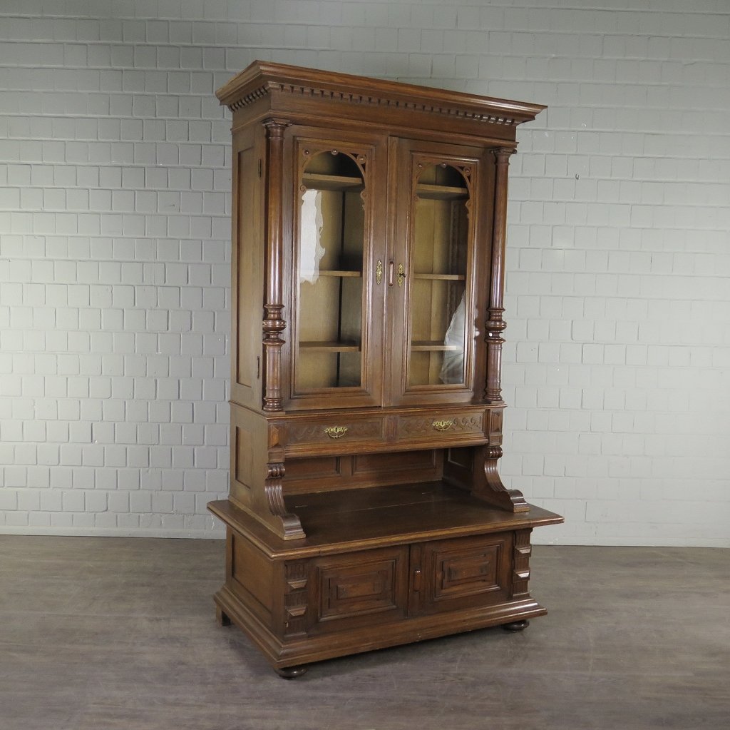 Vitrine mit Truhenbank Schrank Gründerzeit 1880 Eiche