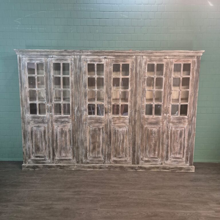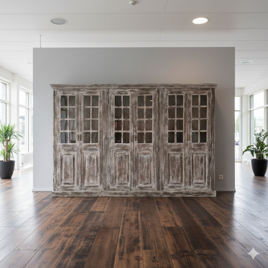 Charmante vitrinekast van massief hout in shabby chic stijl – Veelzijdig te gebruiken als boekenkast