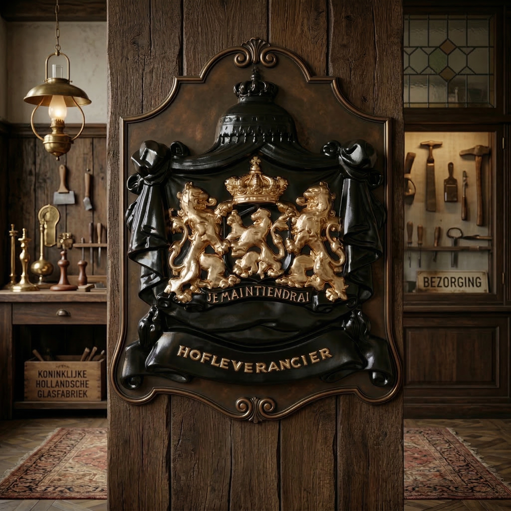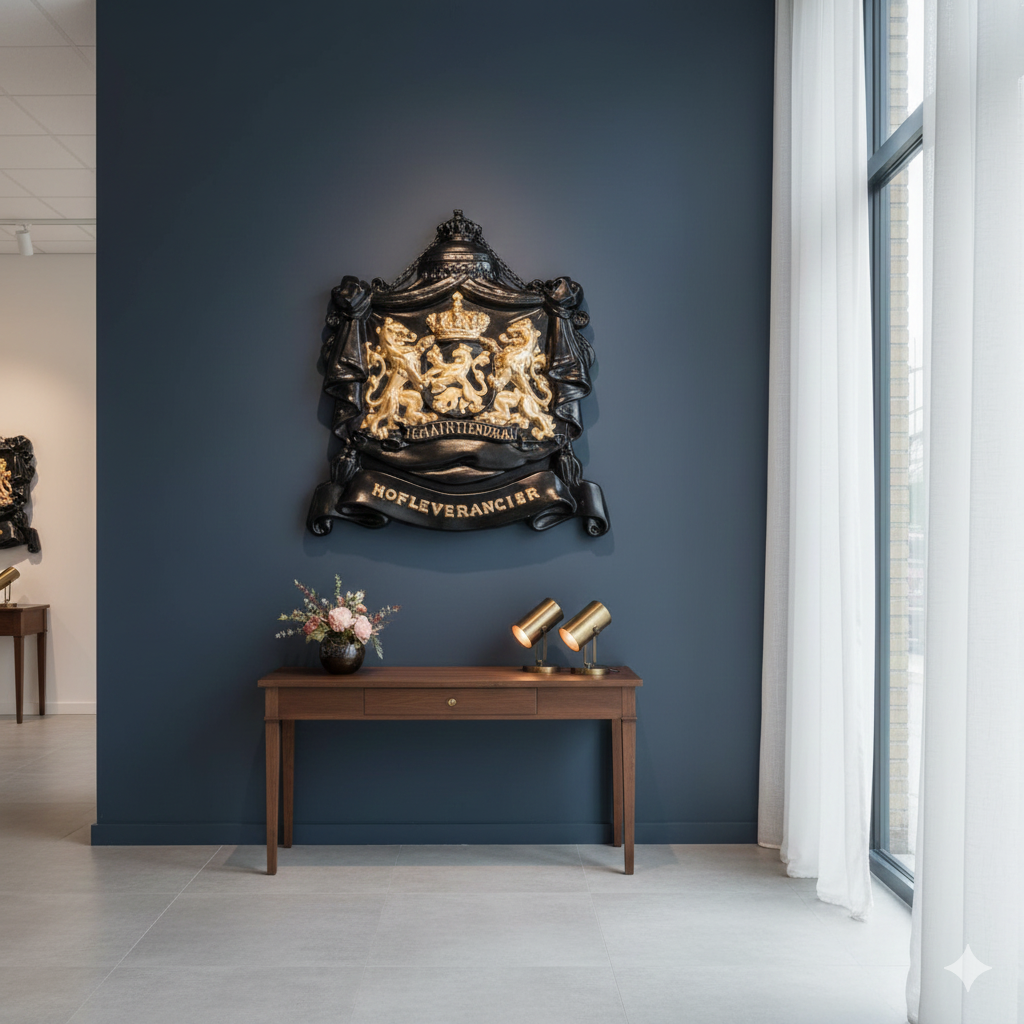 Wappen-Schild Je Maintiendrai / Hofleverancier Aluminium 0,43 m