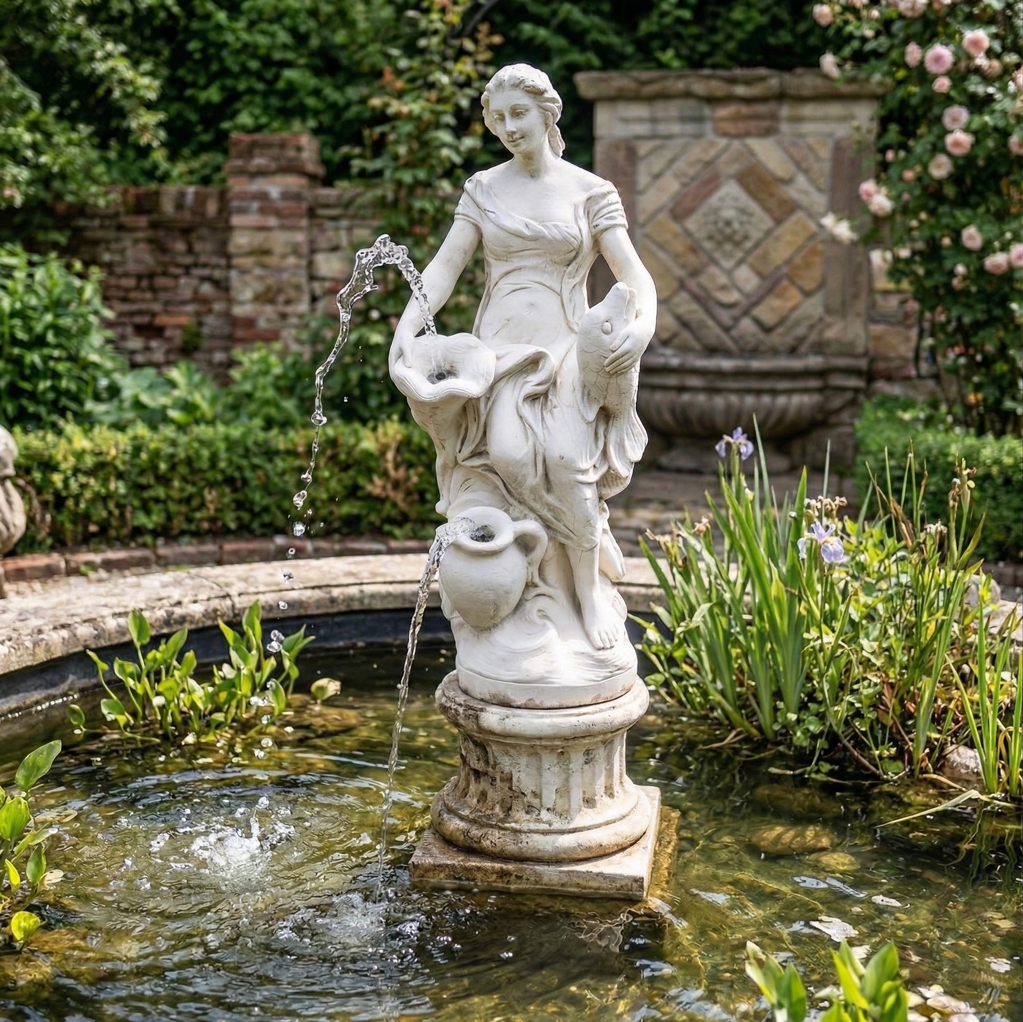 Wasserspeier Beton Frau mit Fisch 1,00 m