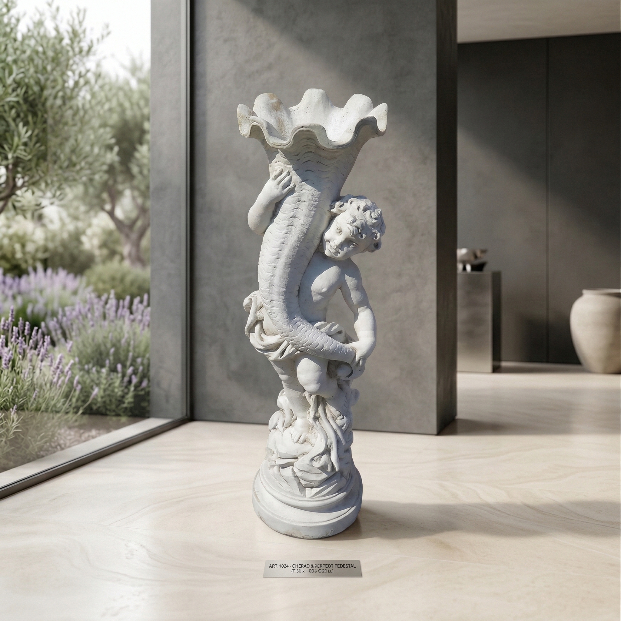 Wasserspeier Beton Putte mit Muschel 1,00 m