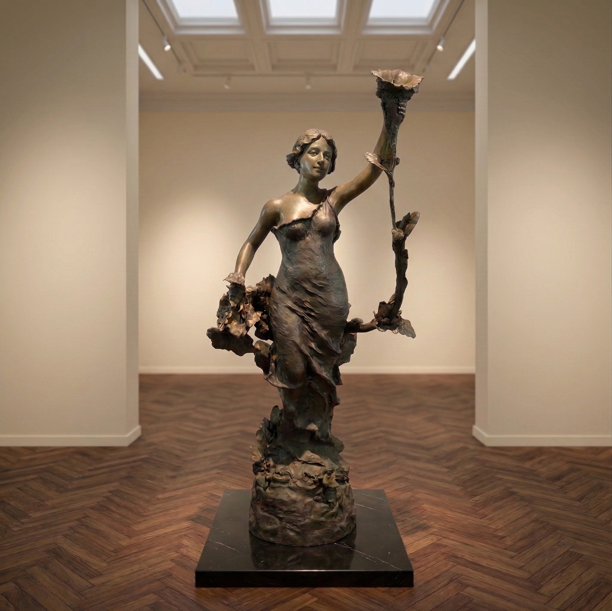 Formschöner Wasserspeier unbekannten Alters aus Bronze. Maße: Breite 0,86 m Höhe 1,82 m Tiefe 0,50 m
