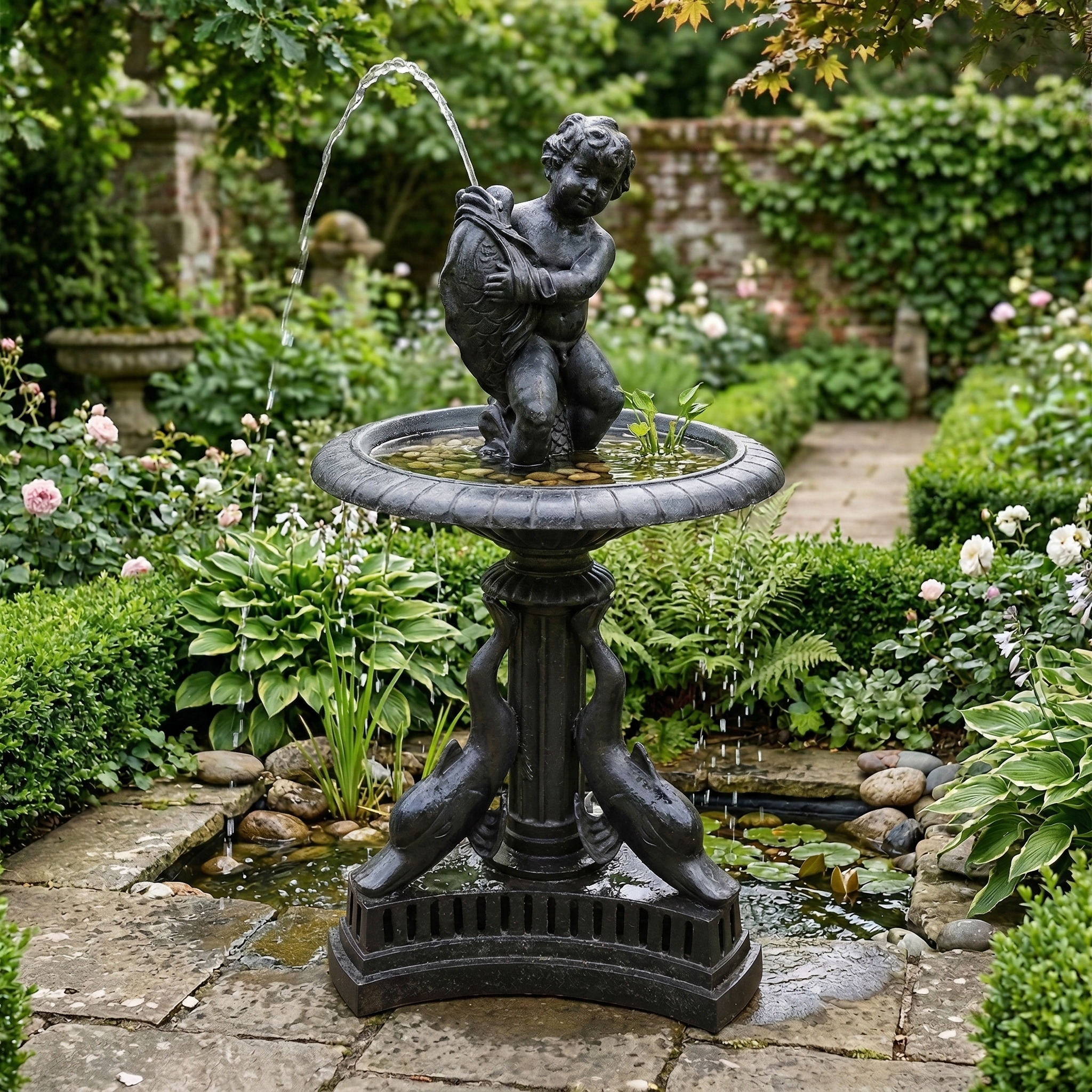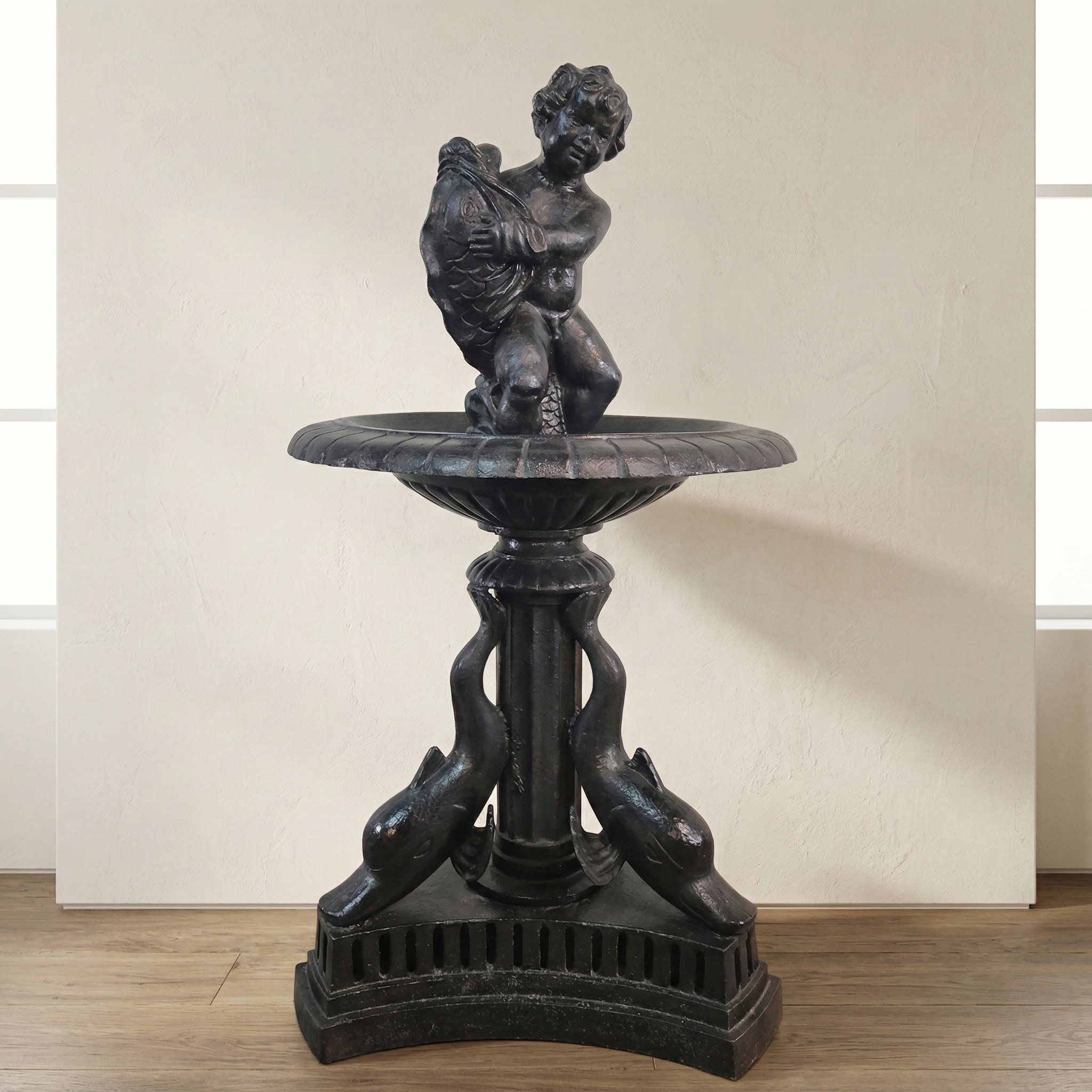 Zum Verkauf steht ein wunderschöner, massiver Wasserspeier aus Gusseisen. Das kunstvoll gestaltete Design mit Engelmotiv und Wasserschale verleiht jedem Garten oder Hof ein klassisches und edles Ambiente. Ein stilvolles und zeitloses Element für Gärten, Innenhöfe oder Terrassen!   Details:   Material: Gusseisen Design: Engel mit Fisch & dekorativem Sockel mit Delfinmotiven Zustand: Guter Zustand, altersbedingte … Weiterlesen