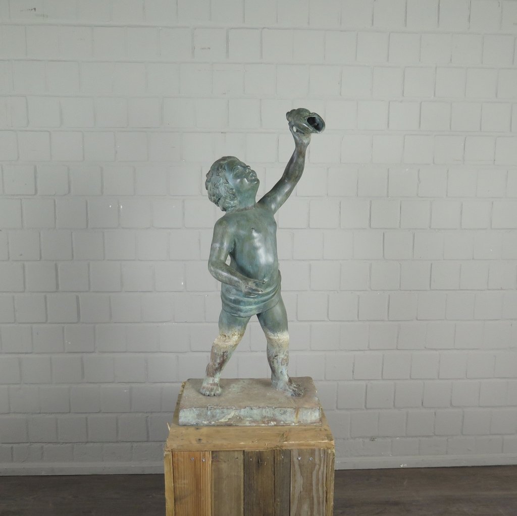 Wasserspeier Wasserspiel Putte mit Muschel Bronze 0,87 m