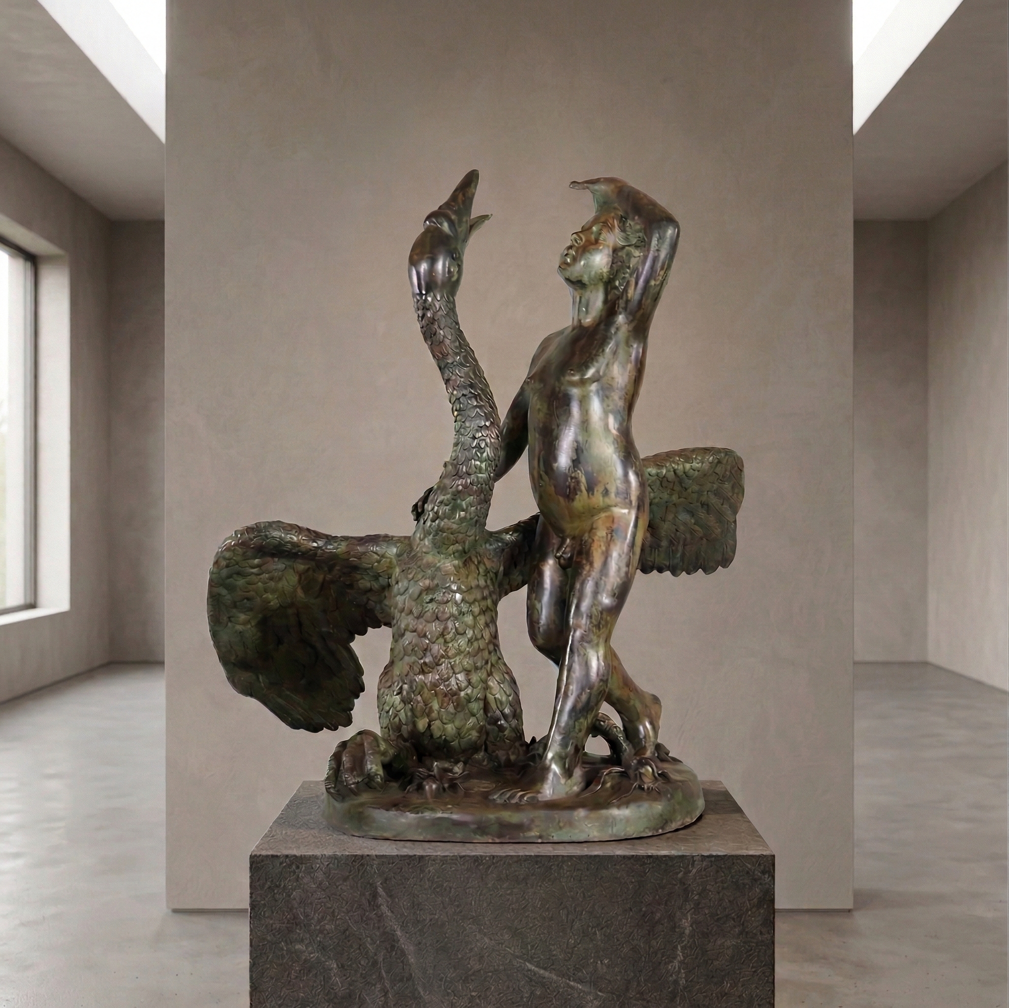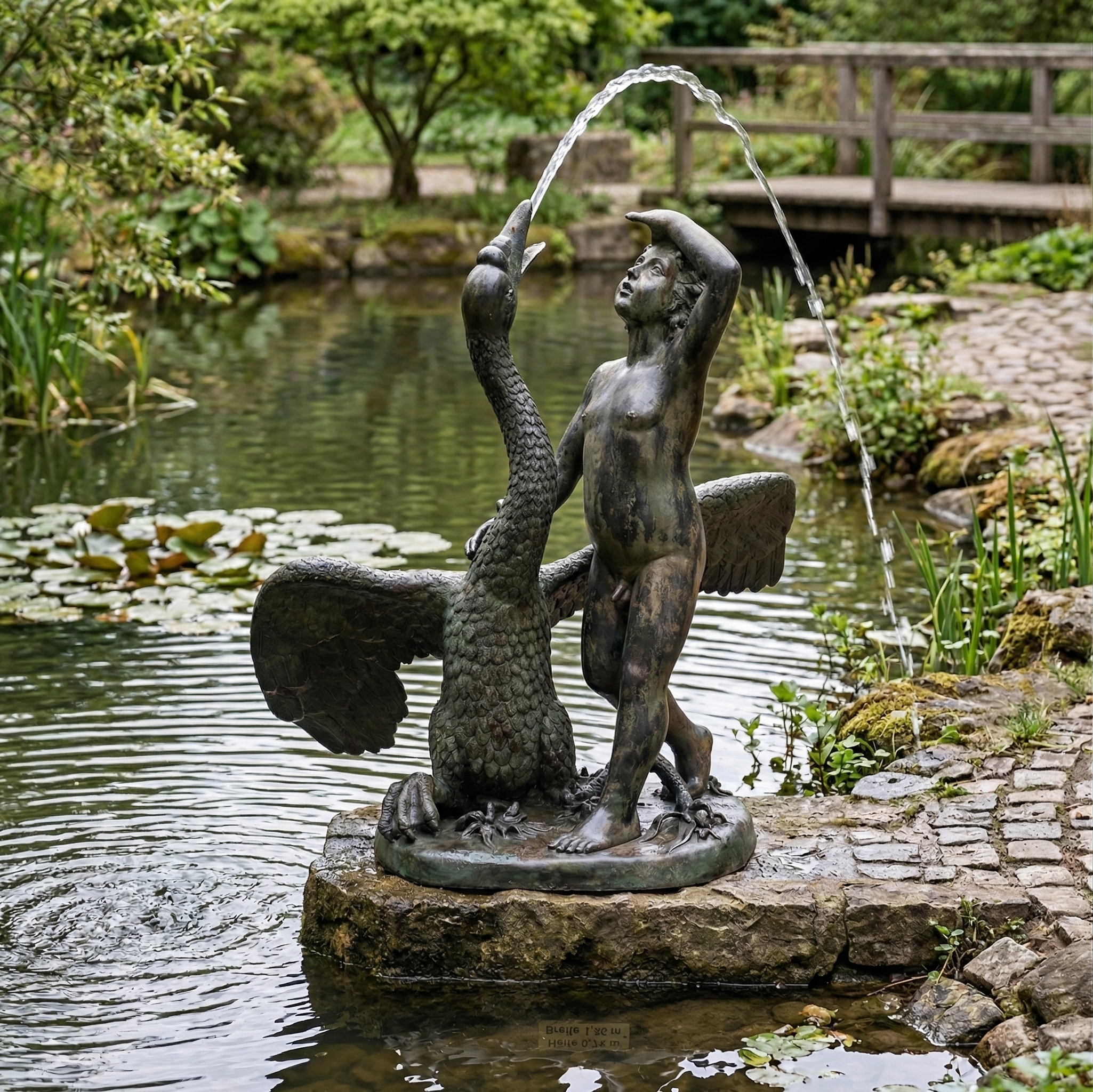 Wasserspeier Wasserspiel Putte mit Schwan Bronze 0,94 m