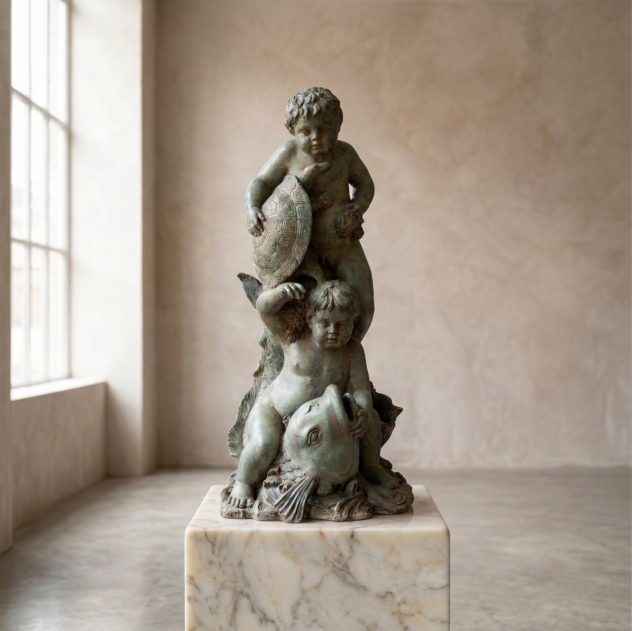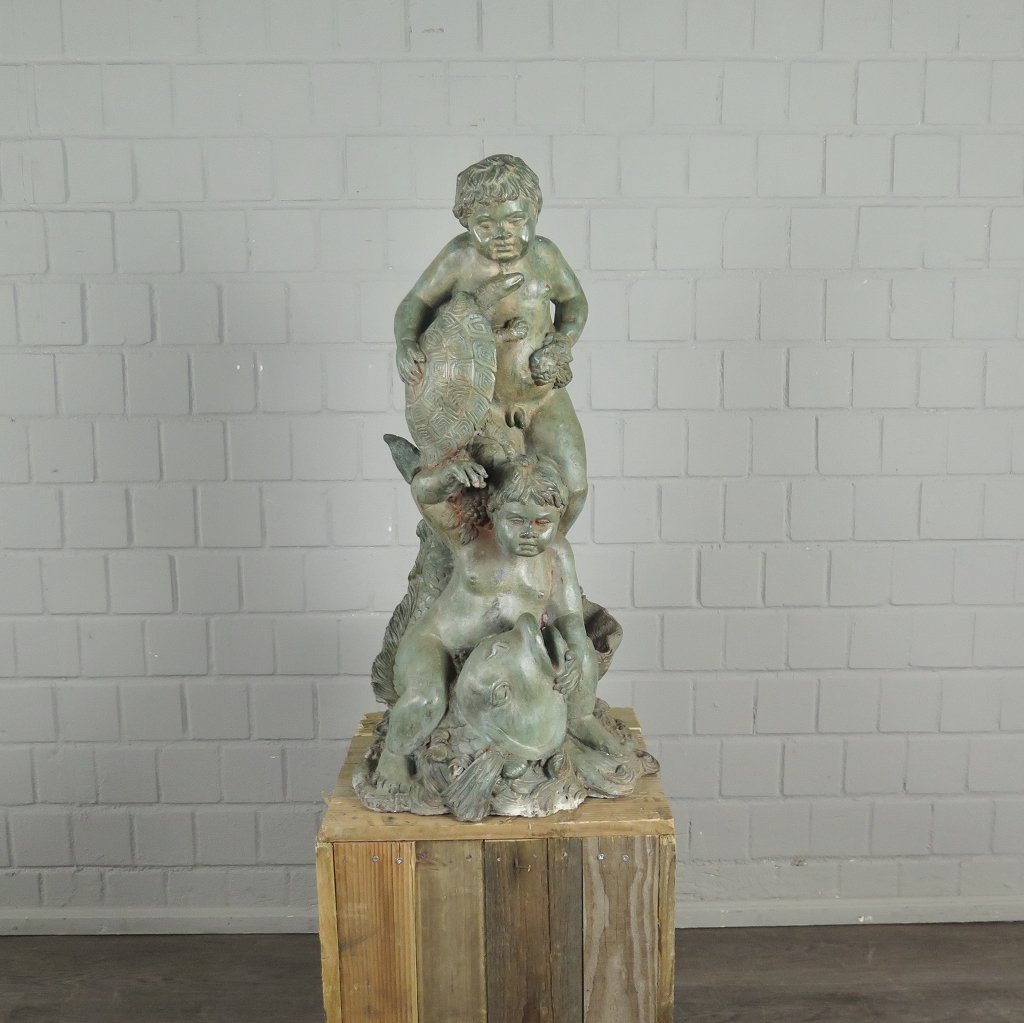 Wasserspeier Wasserspiel Putten mit Fisch & Schildkröte Bronze 0,82 m