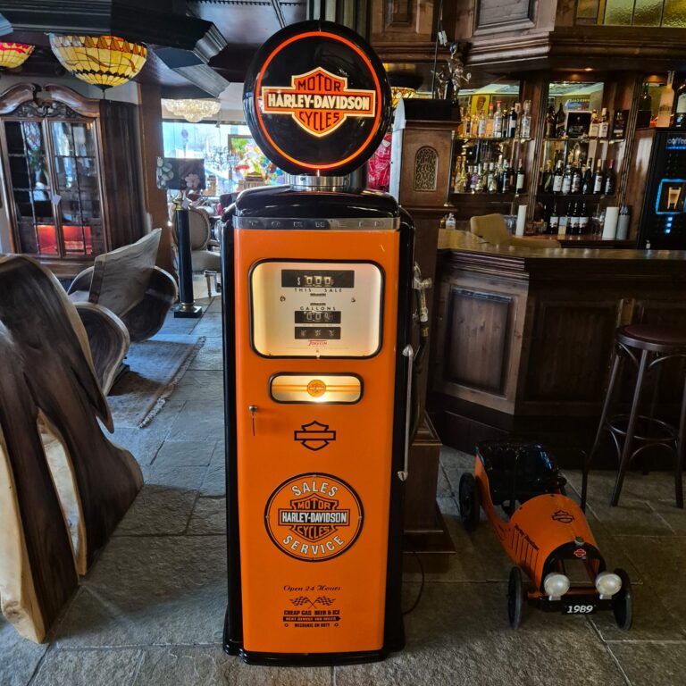 Restaurierte Tokheim Zapfsäule (Modell P300) hergestellt in den 50er Jahren. Die amerikanische Zapfsäule befindet sich in einem guten Zustand und weist nur geringe Gebrauchsspuren auf.   Tokheim Modell P300 teilweise verchromt hergestellt in den 50er Jahren ohne Innenleben (geruchsfrei) ca. 100 Kilogramm schwer   Maße:   Breite 0,65 m Höhe 1,86 m Tiefe 0,42 m … Weiterlesen